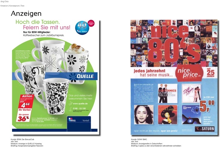 • Anzeigenentwürfe